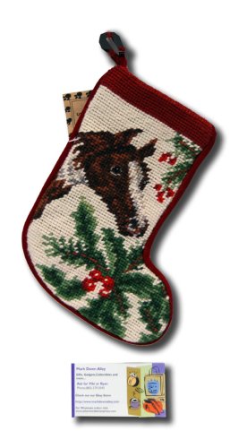 Needlepoint Pet Horse Lover Stocking for the Holidays. If you Love your Horse you will love this Stocking. Great Detail, hand stitched. Measures:8 1/4" h x 5 3/4" w